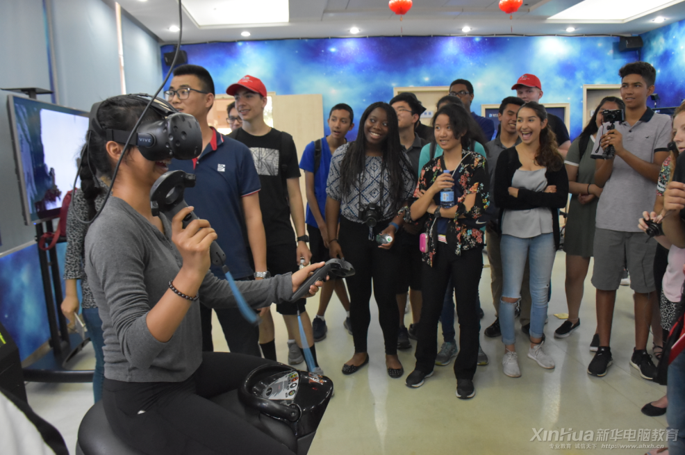他们不远万里从美国而来,在专车的接送下,来到了学院,一起参观了美丽的校园和新生们即将学习、生活的场所。在综合楼前,引导员带着美国格兰纳达山学校师生代表团观摩学子的优秀作品,参观学院的校史馆以及科技体验营,以最直观的方式了解了学院学子学习成果,也在学院的高科技设备中体验了互联网科技的发展,参观过程中,美国格兰纳达山学校师生代表团还亲自加入体验了电子竞技专业的吵燃对抗赛。
