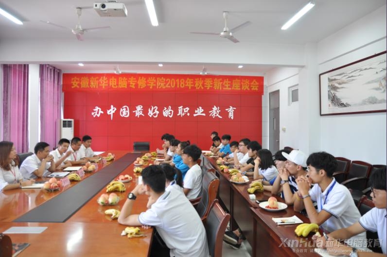 会议室里摆放好了水果,迎接来自各个专业的新生。座谈会以亲切的相互问候开始,轻松活泼的聊天氛围渐渐让同学们敞开了心扉。有的同学第一次离开家乡,不知道怎样融入集体中去,学生处老师鼓励他多参加社团活动,并介绍了我院组织的多种多样丰富多彩的活动,鼓励同学们丰富自己的课余活动。还有的同学对将来的就业十分担心,就业办的老师仔细向同学介绍了我院的就业模式,加入安徽新华终身推荐就业,在学习过程中也有很多合作企业,会经常组织名企参观活动,让同学们提前了解到自己即将工作的岗位。还有的同学担心自己学不会,教学的负责人详细介绍了我院的教学特色,并鼓励学子一定及时与导师沟通。