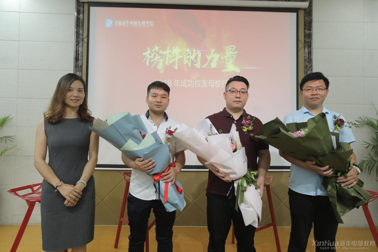 接下来的校友分享环节中,杨志龙、熊明明、张健鑫三位校友向我们讲述了当年的青春时光,分享了自己的创业历程,同时也不忘学校培养,杨志龙说:我所取得的成绩离不开母校的栽培,可以说没有新华就没有我的今天。我想,所有的校友都和我一样,对母校有一种深藏于心的感恩。正是老师们的不私教诲,才孕育了我们今天的成绩。