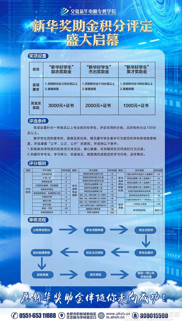 自1988年建校以来,一直致力于中国电脑教育的普及和发展,成为中国电脑教育的一面旗帜。为激励更多的有志青年加入到学习电脑技术的行列,改变人生的命运,安徽新华隆重推出百万奖助金项目,旨在帮助有志青年实现追求科学知识,实现人生价值的崇高理想!
