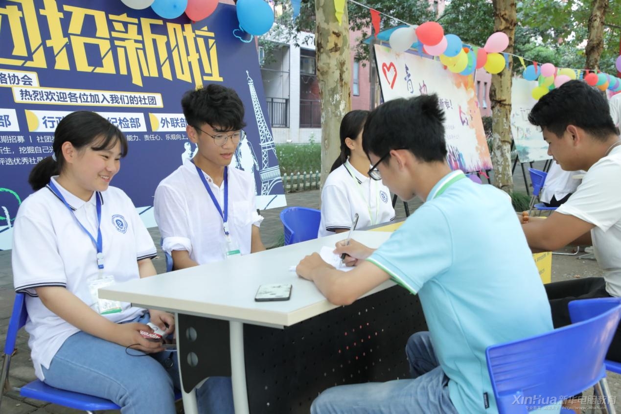 轮滑协会、摄影协会、新华之声广播站……为了招新,社团骨干们早早就来到现场做准备,社员一起发宣传单,认真回答同学们的问题,场面十分热闹。