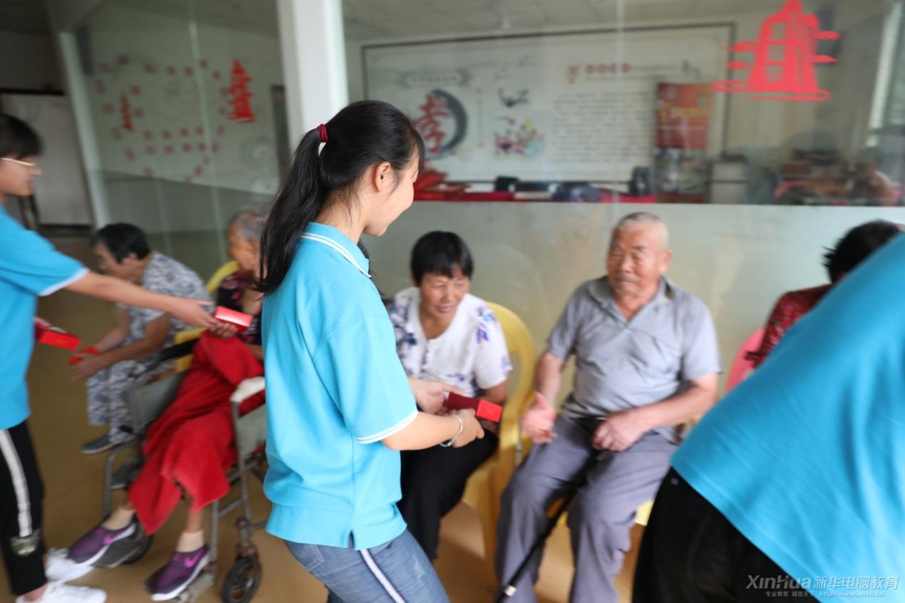 安徽新华电脑专修学院学子代表来到合肥红梅苑小区养心苑养老院开展节日慰问活动,让老人们提前感受中秋节日的温暖。