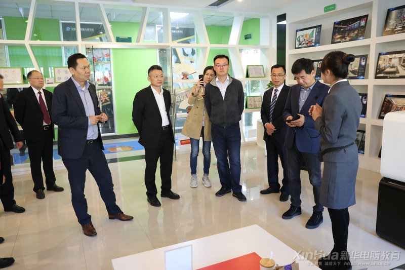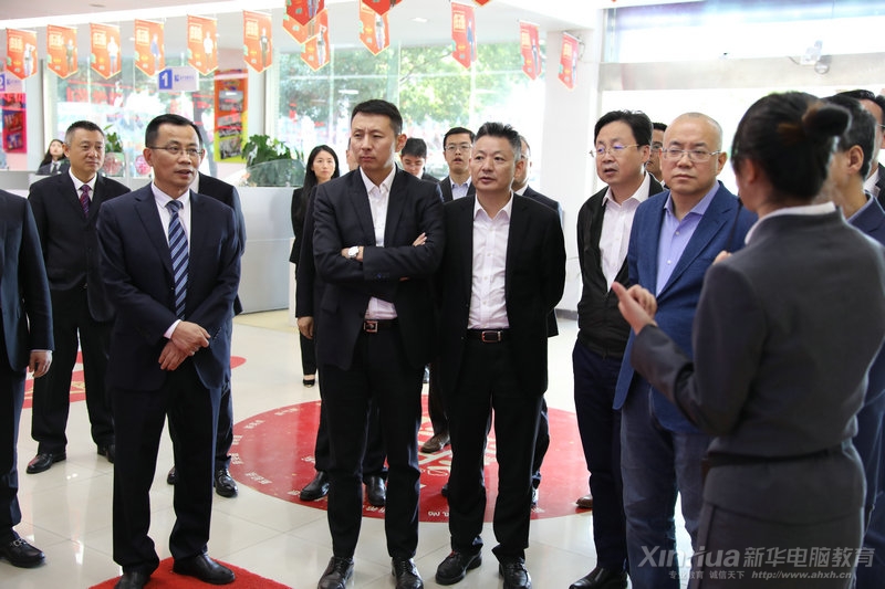 代表团一行人先后参观了综合楼、咨询中心、就业办、各专业实训室等地,在我校老师的介绍下,逐渐了解到安徽新华电脑学院的硬件教学设施与“精技”的教学理念,对我校特色的五步教学法也深感赞同。