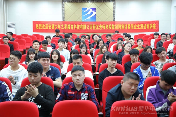 安徽新华电脑专修学院创就业指导中心于5月8日在学术报告厅举办了“科学规划未来,创造美好人生”职业生涯规划讲座,讲座由少年之星教育创始人、全国著名青年演说家、心理咨询师、国际NLP执行师、全国信息化培训优秀教师、全国500多所学校德育顾问,名誉校长。新安人才网、中华英才网、中华讲师网特聘讲师程龙老师主讲,来自全校100余名师生参加了本次讲座。
