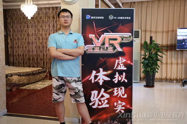 安徽新华电脑专修学院的一名萌新,现在就读于VR+环境艺术设计师专业。谈及当时为什么报读VR+环境艺术设计师专业时,何毅豪是既想学又害怕,VR+环境艺术设计作为当下最热门的学科之一,就业前景十分广阔,是何毅豪理想专业的选择之一。但是学习艺术设计,这对于从来没有接触过设计的何毅豪来说,无异于一个巨大挑战,何毅豪又担心自己学不好。
