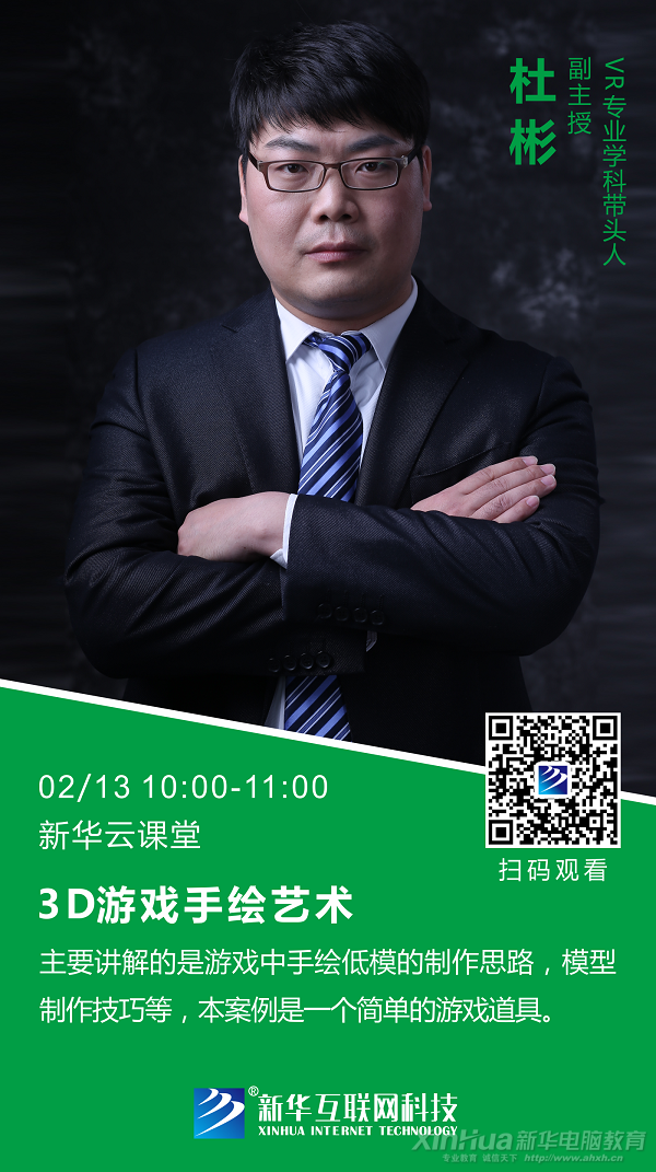 新华学子都知道的《新华云课堂》又有大咖开课啦!今天来的是VR专业金牌导师杜彬,杜彬老师要为大家讲授的是课题是:3D游戏手绘艺术。