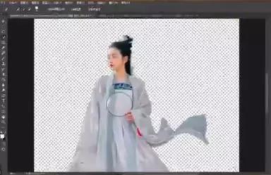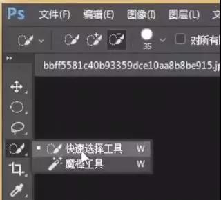 1、PS里打开图片,找到快速选择工具把图上人物抠出来。