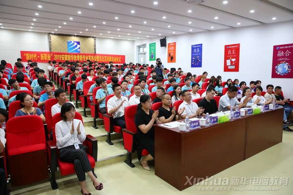 上午10时许,领导嘉宾与在场学子共同观看了精彩震撼的《新专业发布开场视频》VCR。随后,安徽新华电脑专修学院校区主任上台向在场嘉宾致欢迎词:2019年,国务院颁发了《国家职业教育改革实施方案》、人力资源社会保障部发布了13个新职业信息。各类政策的出台,旨在完善职业教育和培训体系、深化职业教育改革,推进产教融合,培养更多高技能人才。基于此,安徽新华电脑专修学院五大新专业顺势而生。