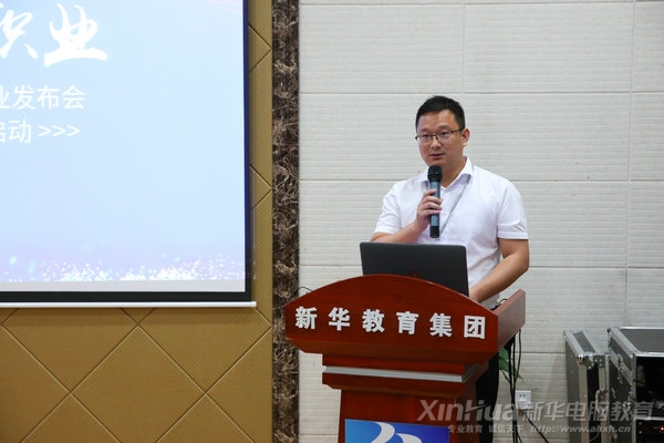 安徽新华电脑专修学院校区主任上台向在场嘉宾致欢迎词