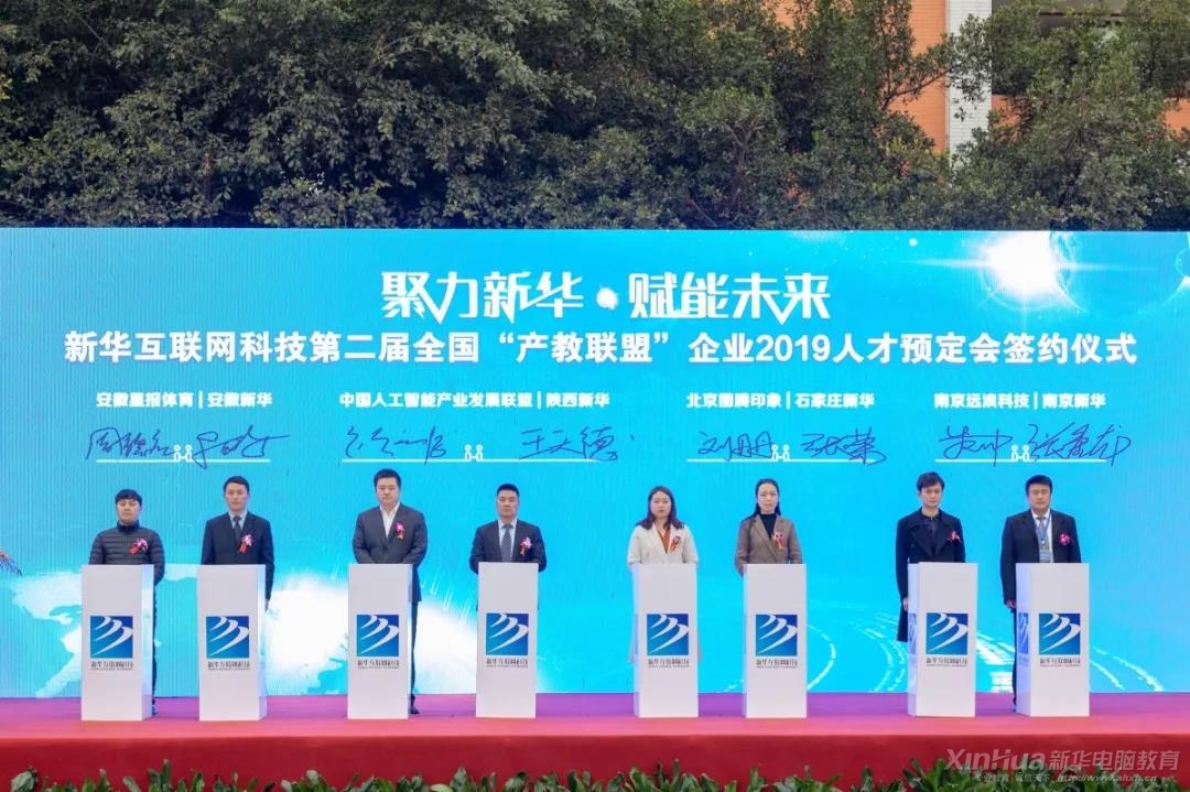 2019年2月22日“聚力新华 赋能未来”新华互联网科技第二届全国“产教联盟”企业2019人才预定会暨ACAA 国际数字设计挑战赛启动仪式盛大启动,来自全国各地的包括京东、名家宅配、北京图腾、安徽星报体育、华庭装饰、湖南联创机器人、阿里巴巴金华菜鸟等几十家知名企业,对新华互联网毕业学子进行抢先预定。