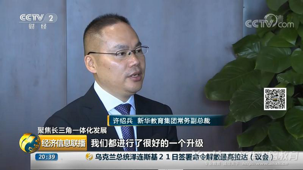 今年5月份,央视《经济信息联播》栏目聚焦长三角职业教育发展,新华教育集团常务副总裁许绍兵接受央视采访。许总说道:“随着长三角产业升级,新华互联网科技也积极拓展自己的专业。我们有VR、大数据、人工智能。在汽修专业模块,对于汽车网联、新能源等专业都进行了很好的升级。”