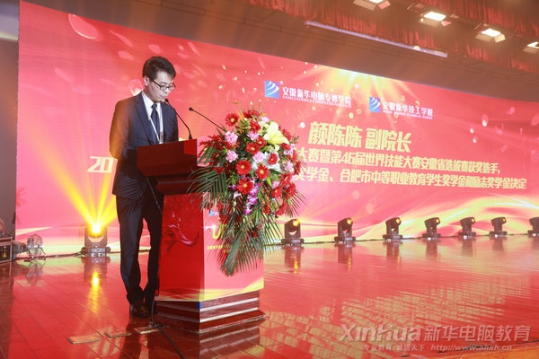 精彩的节目过后,是激动人心的表彰环节。我院副院长颜陈陈上台宣读第八届全省职业技能大赛暨第46届世界技能大赛安徽省选拔赛获奖选手名单和2018-2019中等职业教育国家奖学金、合肥市中等职业教育学生奖学金和励志奖学金决定及名单。