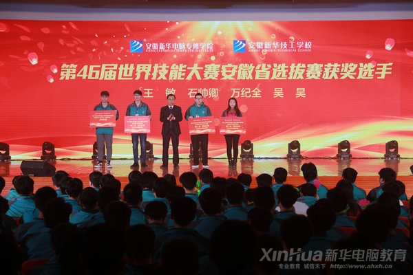 为了促进互联网教育行业发展,培养大国工匠,推动高技能人才队伍建设。经过2个月的赛事选拔,2019年12月17日,安徽省人力资源和社会保障厅、安徽省教育厅终于确定了第46届世界技能大赛安徽省集训队名单,我院王敏、石帅卿、万纪全、吴昊4名同学位列榜单,晚会现场,束凯钧院长为获奖选手颁奖,恭喜他们获得荣誉,并鼓励他们再接再厉。