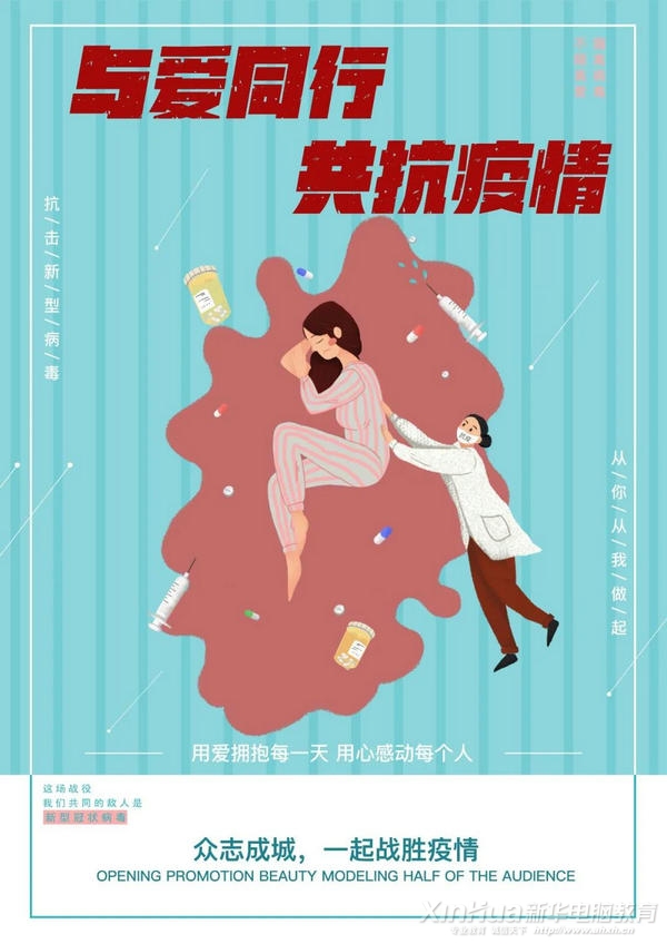 以中心发散的形式将视觉中心吸引到画面中央,突出了众志成城,共渡难关的主题,画面的竖构图拉升了整体的空间,能给读者更多遐想的空间。