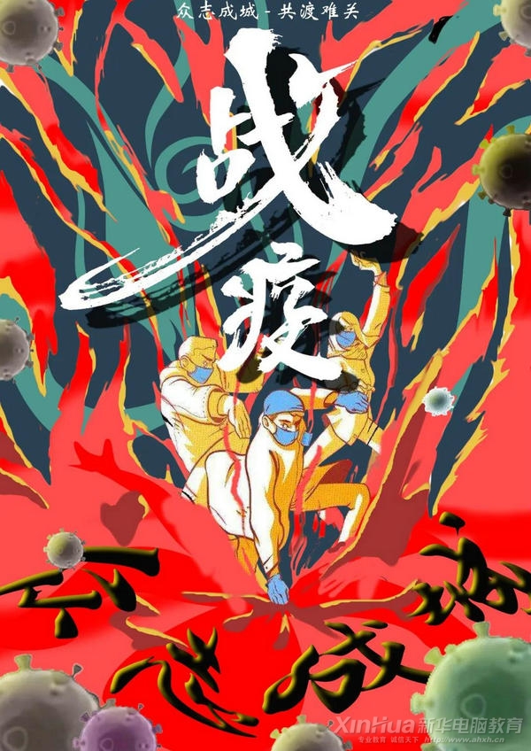 画面正中间的隔离区,只隔离病毒,爱让我们共同抗疫,共同前进,互相帮助,给我们抗击疫情的决心和动力。也寓意我们中华民族是一个团结友爱的大家庭,一方有难八方支援。