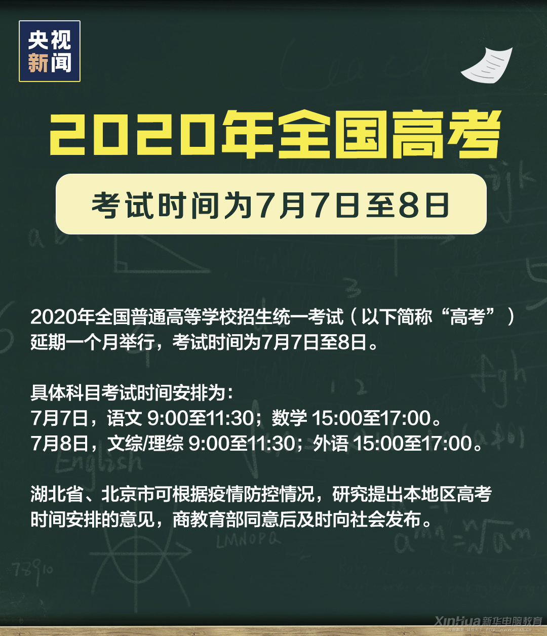 2020年高考时间推迟一个月