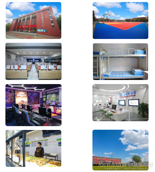 教学楼、各专业实训室、创就业指导中心、操场、篮球场、宿舍、食堂、超市......我们用优美的环境、先进的设备、完备的生活设施,迎接每一位新华学子!