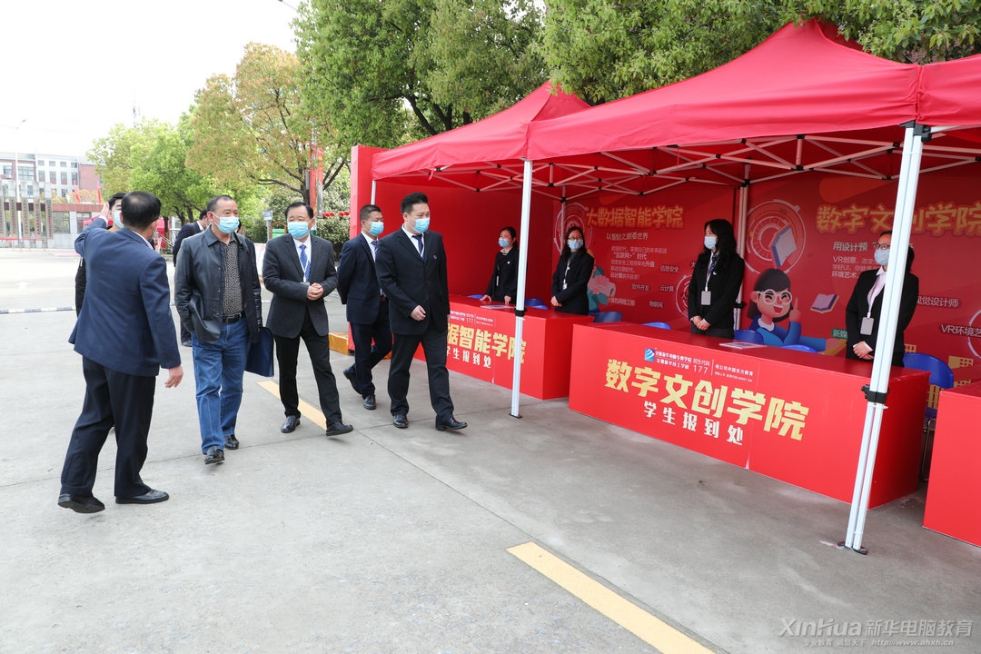 市人社局一行实地查看校园入口处、入校报道处、教学楼、实训室等地的安康码扫描与测温区,并对学生食堂就餐区域及宿舍隔离公寓的设置情况表示满意。