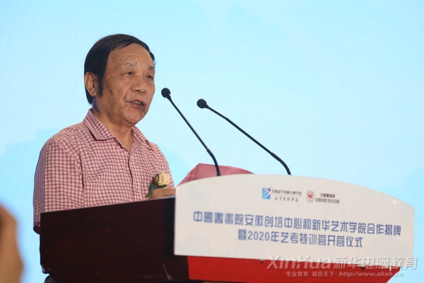 2020年7月17日上午10点,“艺术赋能·筑梦新华”中国书画院安徽创作培训中心&新华艺术学院合作揭牌暨2020年艺考特训营开营仪式在中国合肥盛大举办。中国书画院副院长、中国书画研究会常务副主席朱秀坤;安徽新华电脑专修学院院长束凯钧;中国书画院副秘书长、安徽创作培训中心主任王卫民等众多业内领导、嘉宾及著名书画家共同出席,一起见证中国书画院安徽创作培训中心和新华艺术学院合作揭牌。