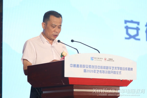 中国书画院副秘书长、安徽创作培训中心主任王卫民接着上台致辞:中国书画院汇聚了卓有建树、德艺双馨的中国书画艺术名家,千余位中青年专业书画艺术家及众多有经验的书画教学导师,此次与新华艺术学院紧密合作是携手共育艺术人才、强强联合的典范。