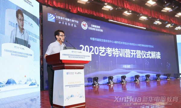 为大力弘扬中华优秀传统文化,为进一步提高素质培养,为铺平新华艺术学院学子的艺考成功道路,本次揭牌仪式现场还同时举办了2020年艺考特训营开营仪式。安徽新华电脑电脑专修学院副院长颜陈陈上台做艺术学院艺考特训营开营介绍,中国书画院副院长朱秀坤等众领导嘉宾艺术家们共同上台,一起启动了新华艺术学院艺考特训营开营仪式,随着卷轴的缓缓开启,新华艺术学院将继续秉持着“志存高远 崇艺博学”的办学理念,为更多的艺术生筑梦他们的艺术梦想!