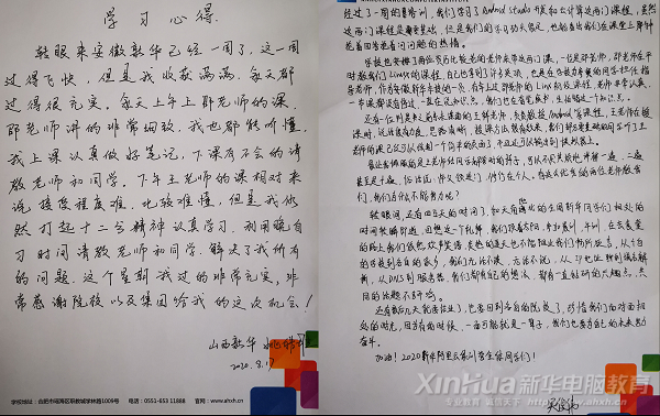 “转眼来合肥已经一周了,这一周过的飞快,我收获满满,每天都过的很充实。每天邵老师的课程,老师讲课非常细致,我也都能听懂,上课认真做好笔记,下课有不会的请教老师和同学。下午王老师的课虽然有些难懂,但是会打起12分精神认真学习,利用晚自习的时间请教老师和同学,解决了我所有的问题,这一周过的很充实,非常感谢院校以及集团给我的这次机会。”