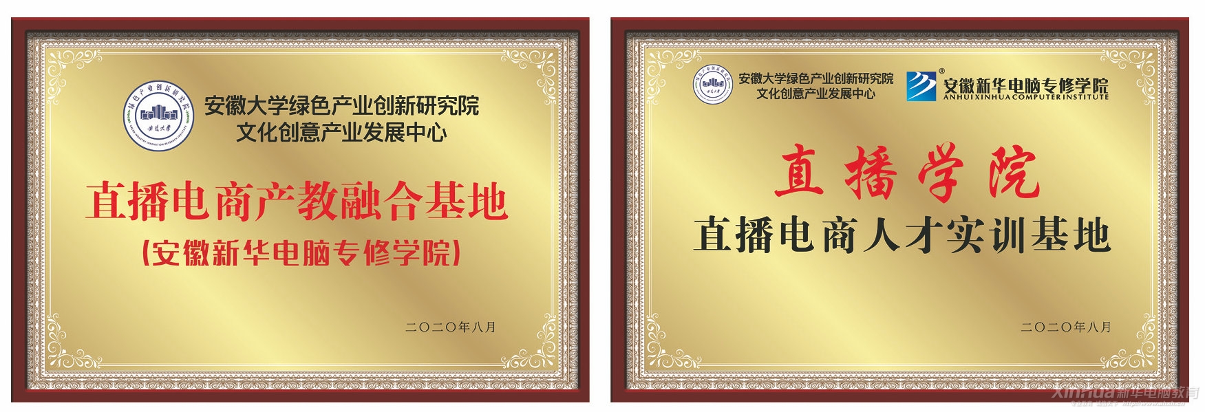2020年8月7日,安大文创直播电商产教融合基地落户安徽新华电脑专修学院,并与安徽新华电脑专修学院共建直播学院。“安大文创直播电商产教融合基地”是安徽大学绿色产业创新研究院文化创意产业发展中心联合安徽大学电子商务创新发展中心、阿里集团BU直播服务商,字节跳动达人服务商联合打造的。