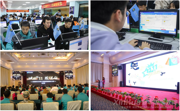 11月10日晚11时55分,新华电脑院校电子商务专业实训楼内灯火通明,来自电子商务专业的导师正带领学生们一起,在此奋战“双十一”战场。同学们纷纷化身“淘宝客服君”,紧张地盯着电脑屏幕,不断敲击着键盘。“双十一”,这个全球的电商盛市,成了电商学子的练兵场。