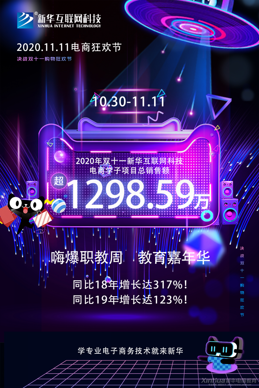 但还有一组数据不得不提:新华互联网科技旗下电脑院校2020年双十一销售总额为12985899.3元!其中线上12690404.61元、线下295494.73元!