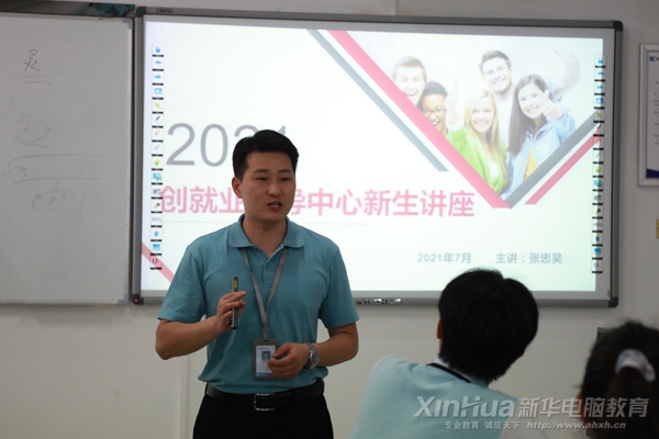 安徽新华电脑专修学院创就业指导中心张忠吴老师担任主讲老师。职普分流,学子从各所中学升至安徽新华,自此开始互联网技术学习,以就业为导向展开新征程。