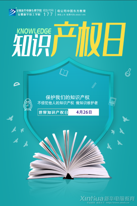 安徽新华电脑专修学院以此为契机,展开知识产权周系列活动,激发学生创作意识和创新创造能力,养成尊重人类智慧,保护知识产权的优良作风。