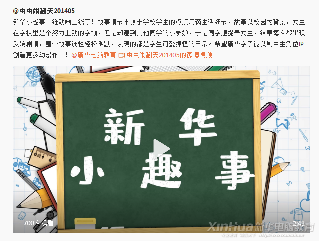 在本次新华IP人物形象首映上,完整的原版视频《新华小趣事》也正式首映。现场主创指导老师汪舰从前期策划、美术设计、动画制作、音乐剪辑、I P 发布方面进行解读,同时汪老师表示新华的学生参与了整个动画的制作分解流程与创意设计。