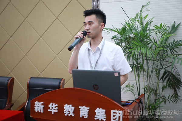 最后,安徽新华电脑专修学院大家长杜文明主任发表重要讲话,他说技能学习与普通院校学习并不一样,自正式开学到现在同学们也已经掌握初步的学习技巧与自主学习能力,希望21届新生能够以学院大平台为跳板,取得令学院骄傲的成绩!以互联网技能加持,毕业时如愿高薪工作。