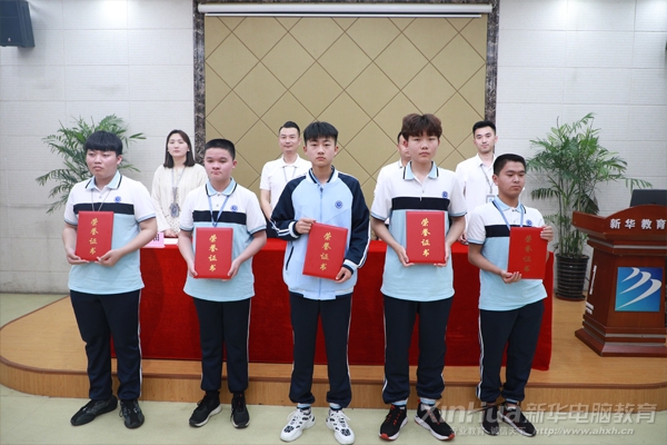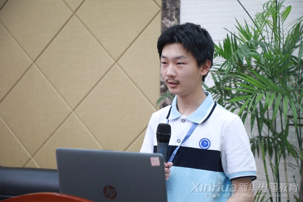 张邵阳作为学子代表上台发言,他说:“今天我以安徽新华为傲,以我拥有的认真负责的老师、贴心耐心的班主任、优良的校园环境为傲!”