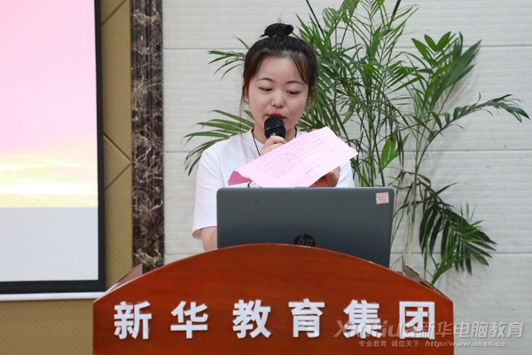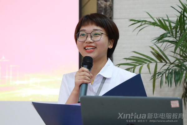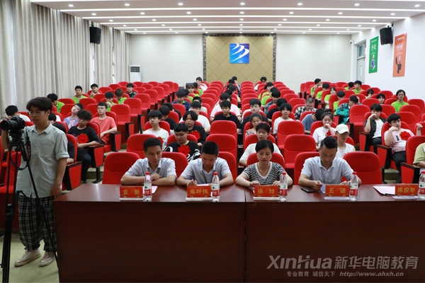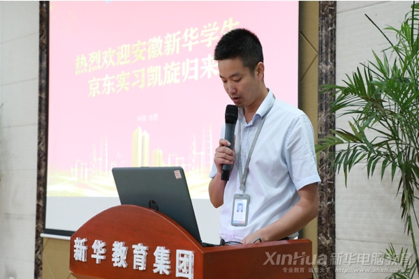 安徽新华电脑专修学院校区主任朱叶伟、安徽新华电脑专修学院教务处主任金鲍、安徽新华电脑专修学院学生处主任王硕、赴京东实习带队老师王文华以及赴京东618实训学子,安徽新华电脑专修学院创就业指导中心主任陈应年主持大会。