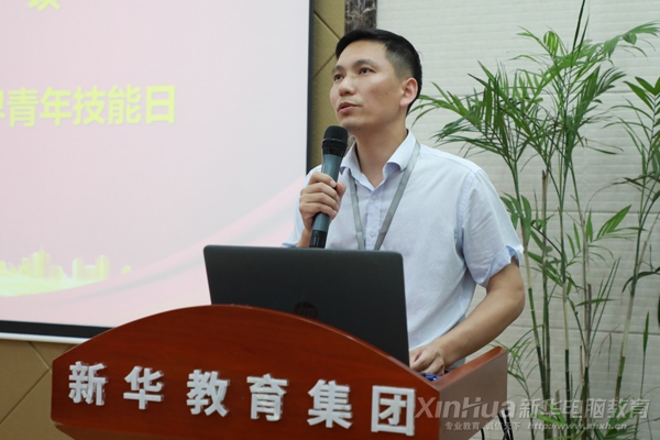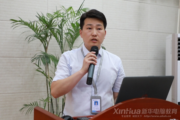 安徽新华电脑专修学院教务处主任金鲍就本次活动致辞,他指出,学子生活在技能型院校,当以互联网技能为谋生、报国强大武器。此次,学院也将同步开展多项技能大赛,一为锻炼与检验学子动手能力,二为职业技能大赛埋下伏笔。金主任现场发出号召,希望同学们踊跃参与。