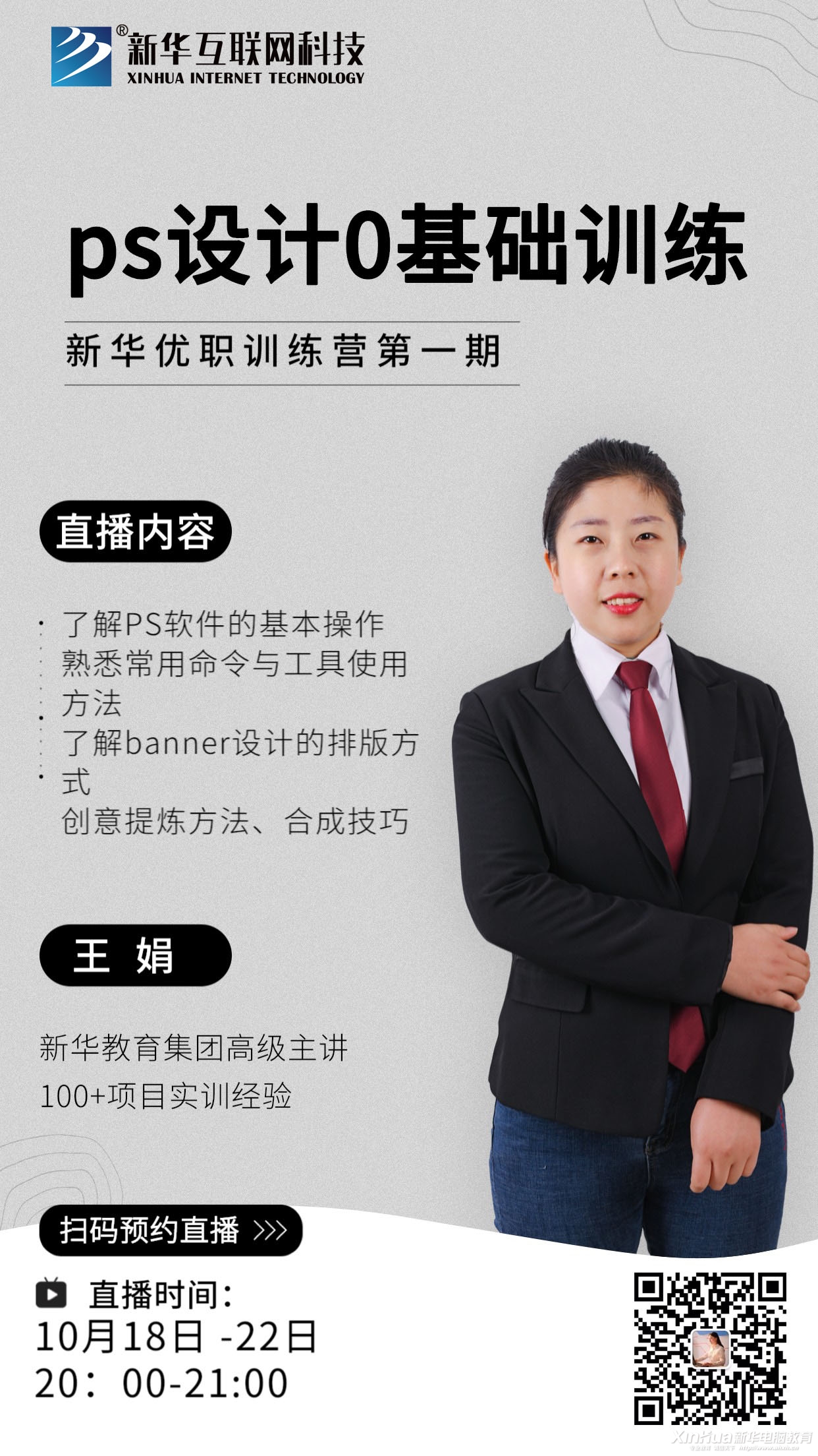 真正的职场制胜法则是个人核心竞争力,什么是你的核心竞争力呢?精辟的说就是你的硬本领。互联网时代,拥有一项过硬的IT技能,会助力你的职场步步高升。由新华电脑教育特别策划的新华优职训练营开营啦,第一期《PS基础起步16法》将于10月18日晚20:00开讲,纯授干货,值得期待。