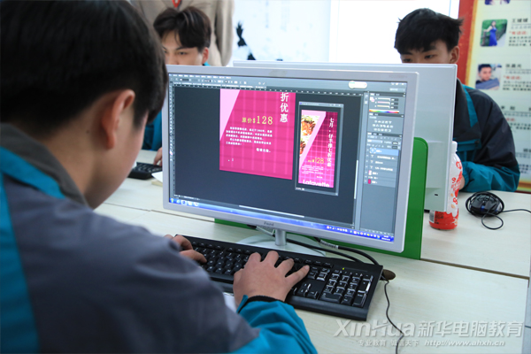 新媒体UI设计师是随着移动智能而兴起的新兴设计行业,培养职业修片师、网店装修师、平面设计师、插画设计师、UI前端、UI交互等人才。新华电脑以创意思维融入教学,以项目实训驱动课程,让学子成为自己项目的leader,完成各项项目实操考验。