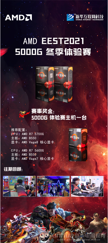 2021年安徽新华担任AMD EEST2021高校电竞大赛的赛点之一,联合品牌方携手打造一场电竞对抗赛事。比赛囊括英雄联盟、王者荣耀、绝地求生等多个项目,为安徽新华学子提供一场校内高水平竞赛的机会,希望同学们踊跃参与!
