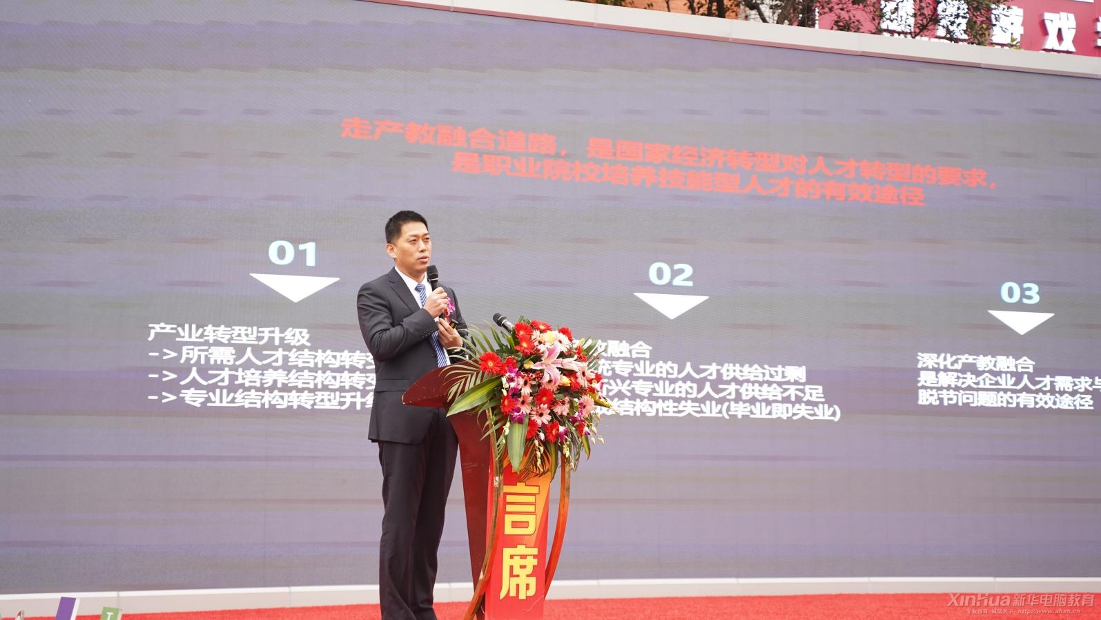 新华互联网科技专业、产教融合解析在热烈掌声中,中国东方教育集团电脑第二事业部总经理助理孙立民对新华互联网科技的专业特色,产教融合等做了专业解析,他指出企业就业需求是新华发展的基础,而新华强大的专业体系,能够满足企业的需求,新华助力产教融合,庞大的就业体系就是让每位新华毕业学子都能找到自己满意的好工作。他希望新华学子在广阔的发展空间和美好的职业前景面前,珍惜此次机会,积极与用人单位沟通交流,展现自我。