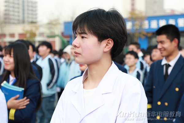 活动现场,学生代表孔乐,带领所有同学庄严宣誓。遵守校纪校规,努力学习技能知识,聆听师长教诲,积极参加校园文化建设活动,做一名优秀的新华学子。