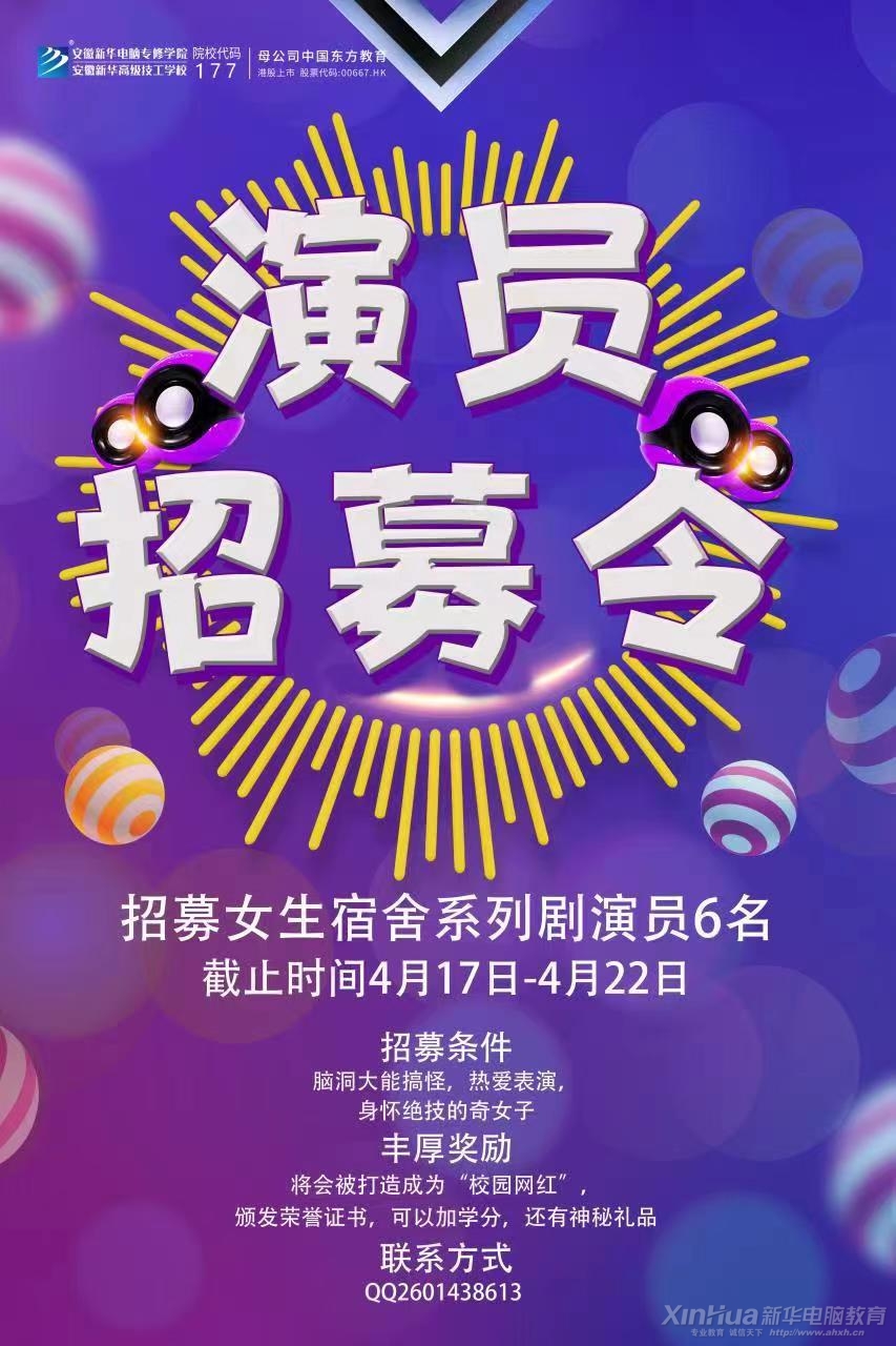 学校短视频直播中心招募女生宿舍系列剧演员6名