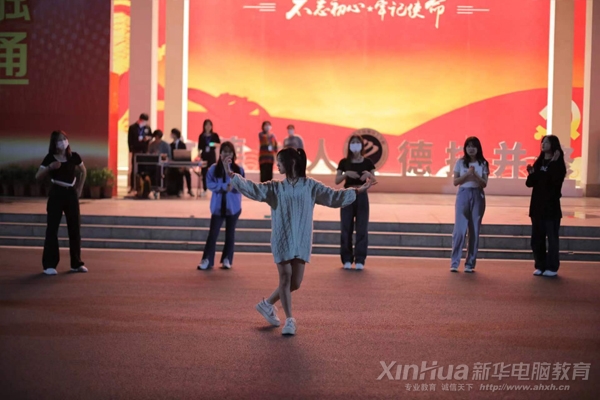 舞蹈是一项高雅的艺术,通过肢体动作表达传递人的美好情感,使人身体舒展,精神得到升华,提升人的文明修养。安徽新华利用晚间时光组织老师跳起校园广场舞,带领社团学生开启校园舞会,张扬学生个性,丰富内心情感,增加相互交流,让在校师生从舞蹈中寻得欢乐与放松!