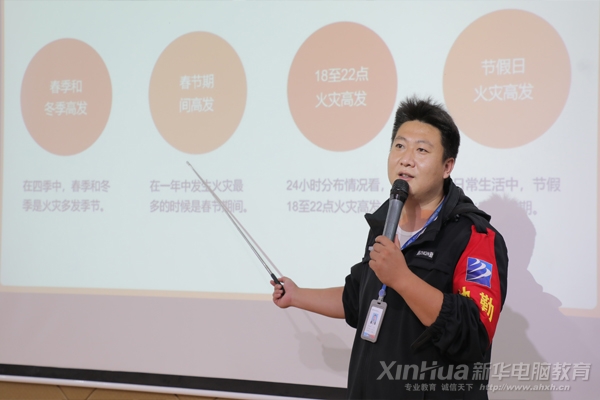 消防知识人人有,安全防范意识不能无。9日下午,消防安全主题讲座在安徽新华报告厅隆重举行。主讲人丁超老师围绕“如何树立消防意识”“预防和杜绝可能引起消防事故的内外隐患”“个人面对突发火灾事故应如何进行救灾及逃生”等方面知识,结合案例进行细致的讲解。同时,对灭火器、水带等消防工具的使用进行了演示操作。讲座中,同学们积极参与互动,现场气氛热烈,讲座效果明显。