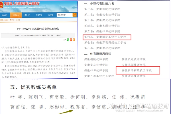 2022年12月12日,安徽省人力资源和社会保障厅正式公布“全省技工院校校园足球联赛获奖名单”,安徽新华高级技工学校荣获全省第六名、体育道德风尚奖,教练员程真君获评“优秀教练员”!