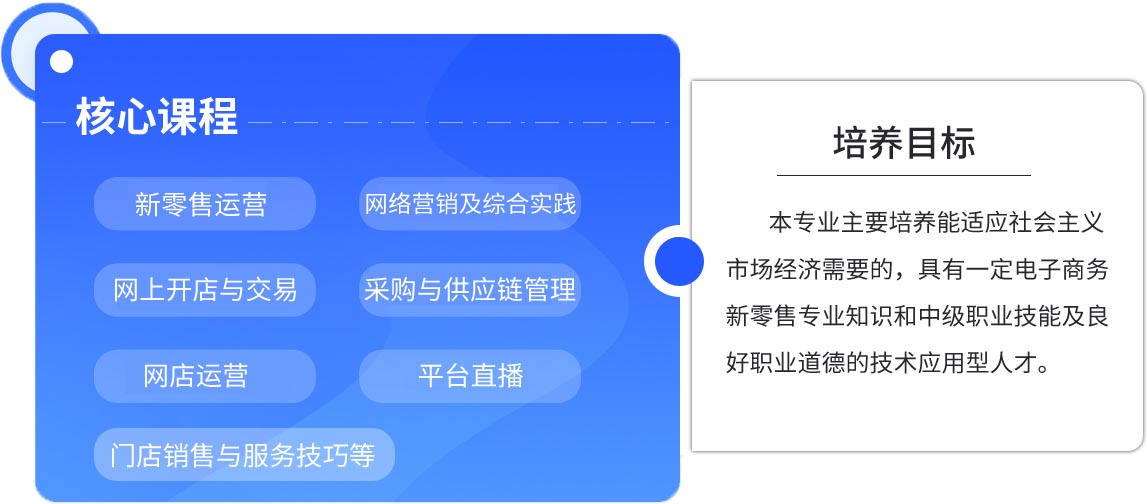 电子商务工程师专业既包含了学生必须要熟练掌握的电子商务和财务理论知识,又包含看贴近市场需求的实操实训内容,着力培养复合型人才。