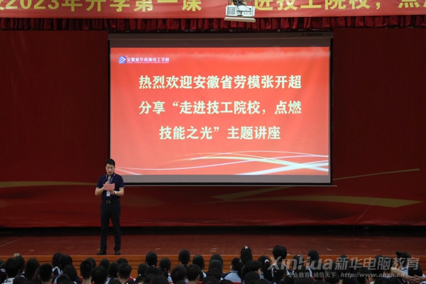为了进一步弘扬劳模精神,培养学生的劳动观念和技能,提高学生的综合素质,我校于近期举行了“走进技工院校,点燃技能之光”主题讲座,本次活动邀请了安徽省劳模张开超作为主讲嘉宾,与在场的师生们分享他的劳动故事和成功经验。