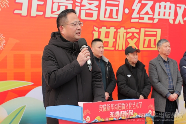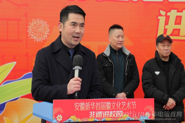 开幕式伊始,安徽新华高级技工学校副校长王俊首先对前来展演的非遗项目表示热烈的欢迎和诚挚的感谢,并指出繁荣校园文化、倡导精神文明、继承传统文化、陶冶高尚情操,让广大师生了解非遗文化、热爱非遗文化、开阔艺术视野,是此次非遗进校园活动的主要任务。
