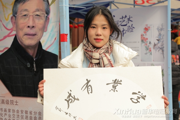 “很荣幸邀请老师给我们作画一幅,我们要把作品装裱起来,欣赏学习!”环境艺术专业学子说。活动现场,各书画大家毫不吝啬,执笔挥墨,一幅幅精彩的作品即刻亮相。书画家更是豪迈大方,现场将作品赠予安徽新华学子,同学们欢呼雀跃。