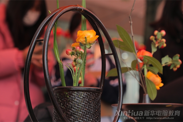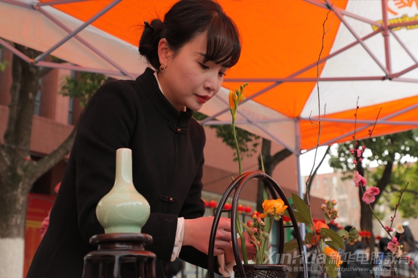 相较于书画、庐州窑、戏曲的张扬、热情,茶艺、插花、剪纸则表现出小家碧玉但美艳动人的绮丽。茶,誉为“国饮”,融合了众多文化元素,一茶壶滋味万千,风情万种!简简单单几枝花,在花艺师的手里就能够联袂出独一无二的精美佳品。手中剪纸生万物,工巧殊胜尽风华,剪纸简直是跳跃指尖上的艺术!同学们驻足欣赏,久久不愿离去。